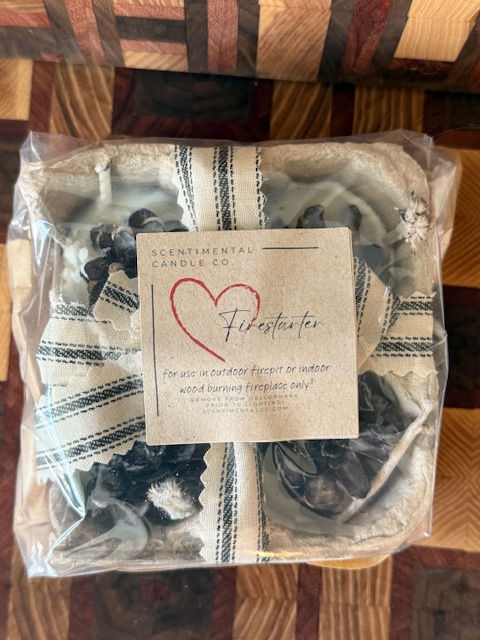 Ignite your evenings with our Firestarter, exclusively crafted for use in outdoor firepits or wood burning fireplaces only. At Scentimental Candle, we believe in lighting memories and living the moment, and our Firestarter is designed to do just that. Easy to use and highly effective, setting the perfect ambiance for memorable gatherings. Embrace the warmth, coziness, and unforgettable scents that only Scentimental Candle can offer.